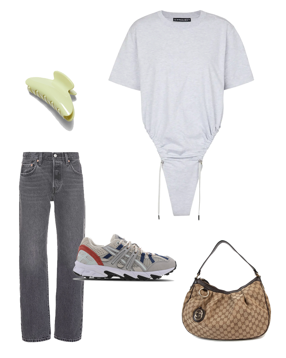 SHOP: Levi’s Jeans, Y / Project top, Asics sneakers, vintage Gucci bag, Weekday hair accessory